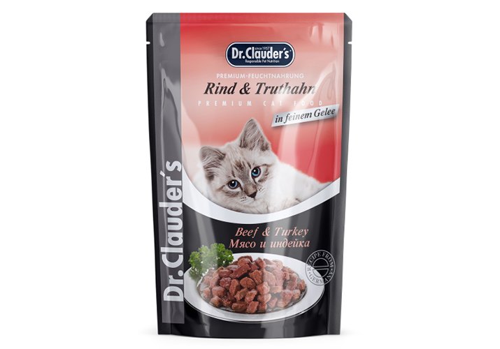 Dr.Clauder`s Паучи Доктор Клаудерс для взрослых кошек Мясо & Индейка кусочки в желе (цена за упаковку) 85г х 12шт