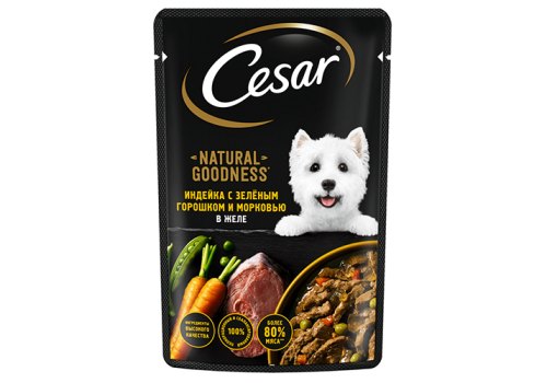 Cesar Natural Goodness Паучи Цезарь для собак Индейка с зеленым горошком и морковью в желе (цена за упаковку) 80г х 28шт