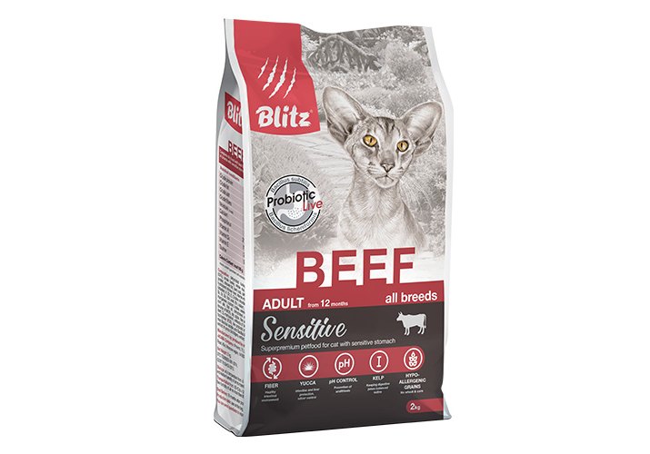 Blitz Sensitive Adult Beef Сухой корм Блиц для взрослых кошек Говядина 2 кг