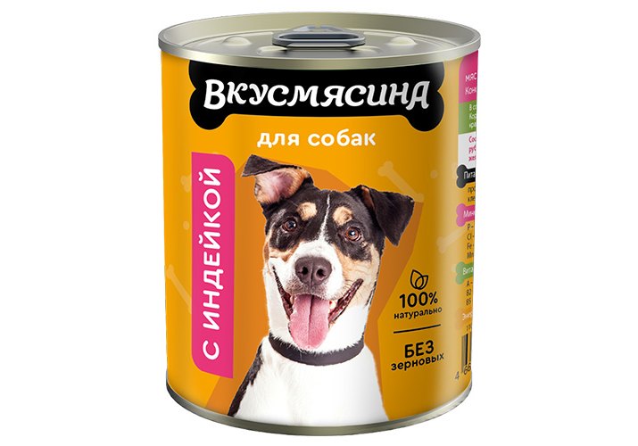 Вкусмясина Влажный корм Консервы для собак с Индейкой (цена за упаковку) 340г х 6шт