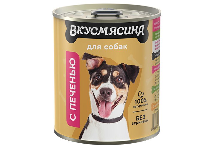 Вкусмясина Влажный корм Консервы для собак с Печенью (цена за упаковку) 340г х 6шт