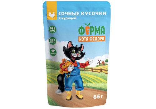 Ферма кота Фёдора Влажный корм Паучи для кошек Сочные кусочки с Курицей (цена за упаковку) 85г х 24шт