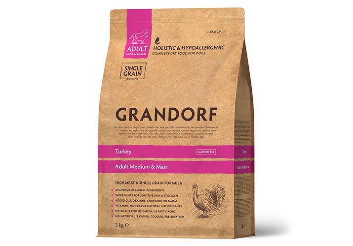 Grandorf Holistic & Hypoallergenic Medium Maxi Turkey Сухой корм Грандорф Низкозерновой для взрослых собак Средних и Крупных пород Индейка 3 кг