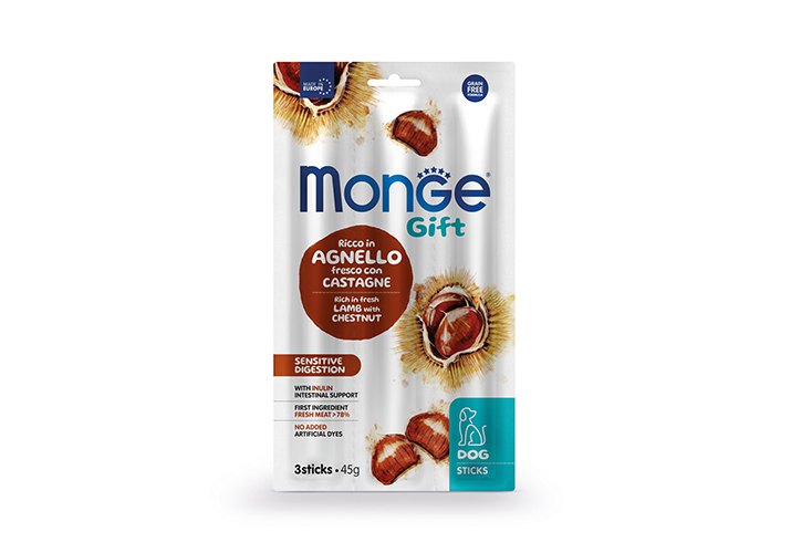 Monge Gift Sensitive digestion Sticks Лакомство Монж для собак с Чувствительным пищеварением Мягкие палочки с Ягненком и каштаном 45 г