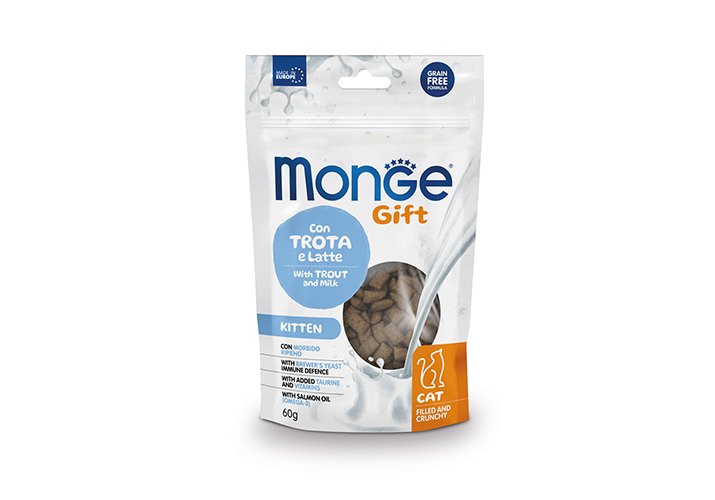 Monge Gift Kitten Filled & Crunchy Лакомство Монж для Котят Хрустящие подушечки с Форелью и молоком 60 г