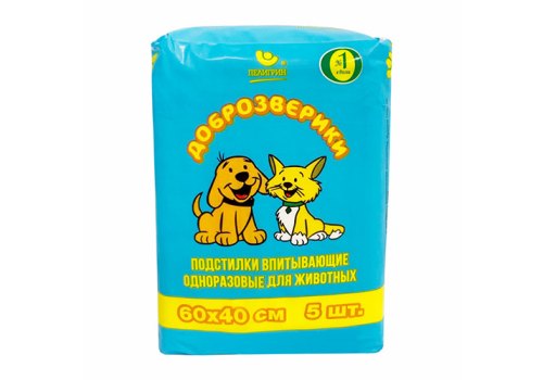 Доброзверики "Экономичная упаковка" Подстилки для животных 5шт 60х40 см