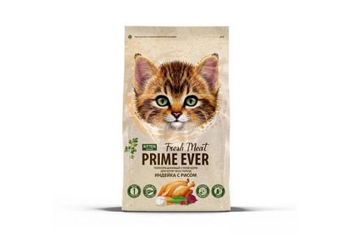 Prime Ever Fresh Meat Kitten Сухой корм Прайм Эвер для Котят всех пород Индейка с рисом 7 кг