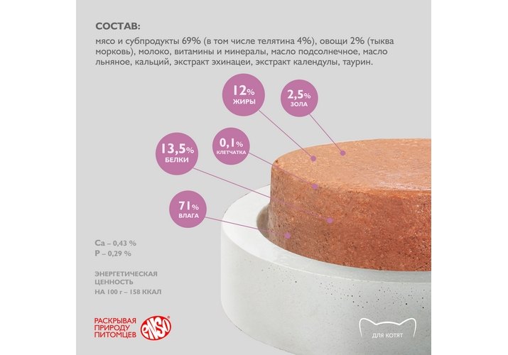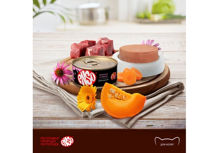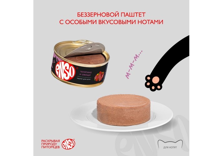 Enso Влажный корм Консервы Энсо для Котят Паштет с Телятиной и овощами (цена за упаковку) 100г х 24шт