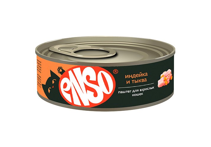 Enso Влажный корм Консервы Энсо для взрослых кошек Паштет с Индейкой и тыквой (цена за упаковку) 100г х 24шт