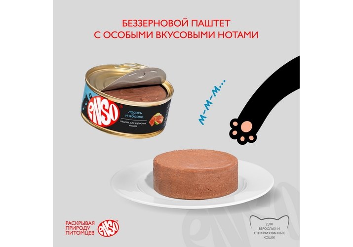 Enso Влажный корм Консервы Энсо для взрослых кошек Паштет с Лососем и яблоком (цена за упаковку) 100г х 12шт