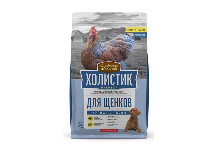 Деревенские лакомства Холистик Премьер Сухой корм для Щенков Курица с рисом 7 кг