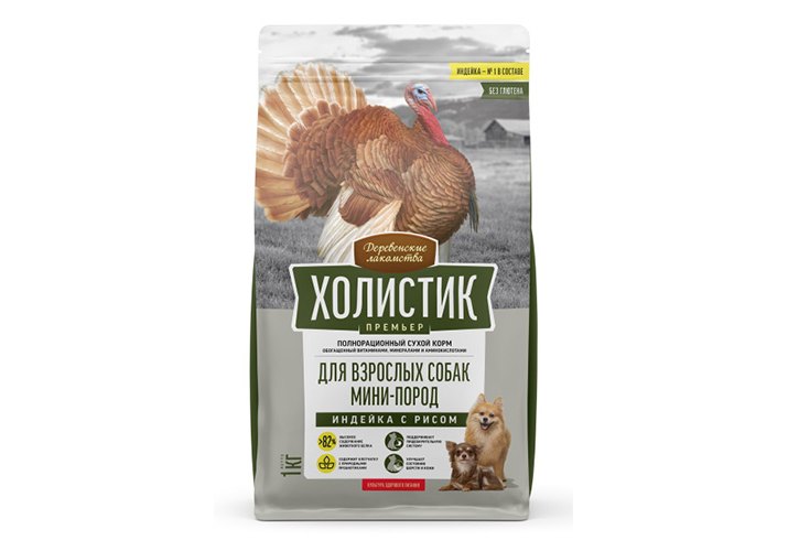 Деревенские лакомства Холистик Премьер Сухой корм для взрослых собак Мини-пород Индейка с рисом 1 кг