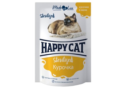 Happy Cat Sterilized Паучи Хэппи Кэт для Стерилизованных кошек Курочка кусочки в желе (цена за упаковку, Россия) 85г х 24шт