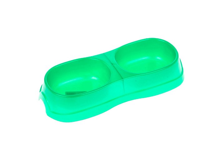 Homecat Atlantis Миска Хоумкэт для кошек двойная 2 х 300 мл светло-зеленый перламутр 28 х 12,5 х 5 см