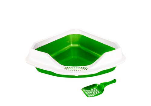 Homecat Туалет Хоумкэт для кошек угловой с бортиком и совком зеленый перламутр 56 х 42 х 17 см
