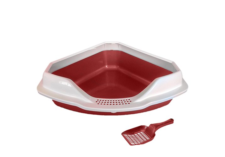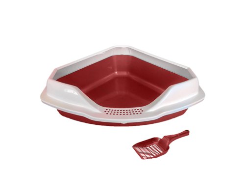 Homecat Туалет Хоумкэт для кошек угловой с бортиком и совком бордовый перламутр 56 х 42 х 17 см