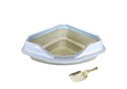 Homecat Туалет Хоумкэт для кошек угловой с бортиком и совком бежевый перламутр 56 х 42 х 17 см