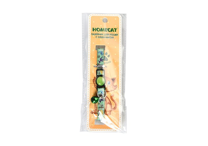 Homecat Ошейник Хоумкэт для кошек с бубенчиком Динозавры зеленый 20 - 30 см