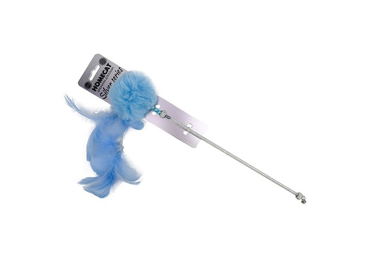 Homecat Silver Series Дразнилка Хоумкэт для кошек помпон с перьями голубая 42 см