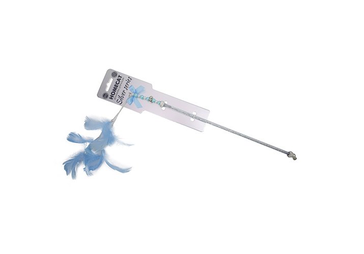 Homecat Silver Series Дразнилка Хоумкэт для кошек удочка из перьев голубая 42 см