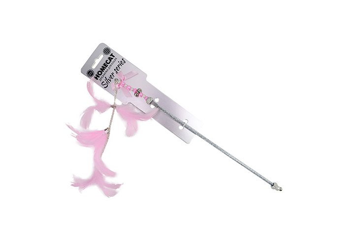 Homecat Silver Series Дразнилка Хоумкэт для кошек удочка из перьев розовая 42 см