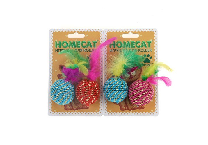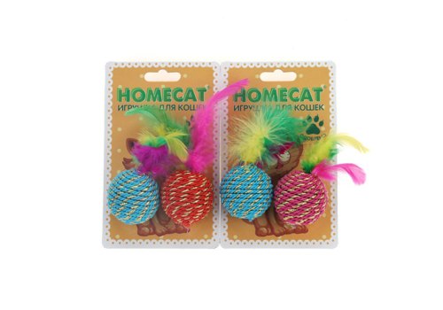Homecat Игрушка Хоумкэт для кошек Мячи веревочные с пером гремящие 1 х 2шт Ф 4 см