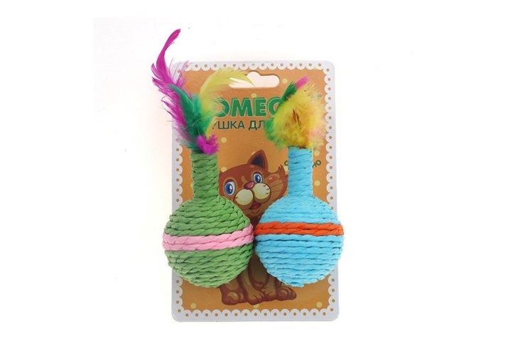 Homecat Игрушка Хоумкэт для кошек Мячи цветные с пером гремящие 1 х 2шт Ф 5 см