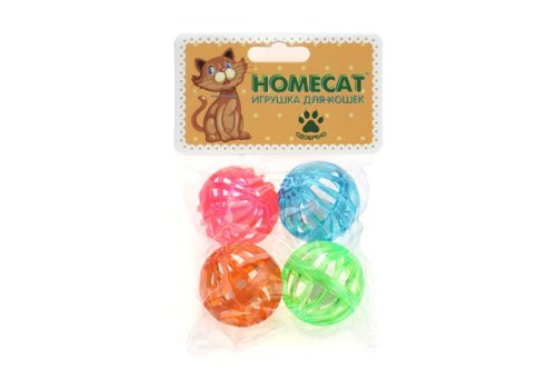 Homecat Игрушка Хоумкэт для кошек Мячи пластиковые калейдоскоп с колокольчиком 1 х 4шт Ф 4 см