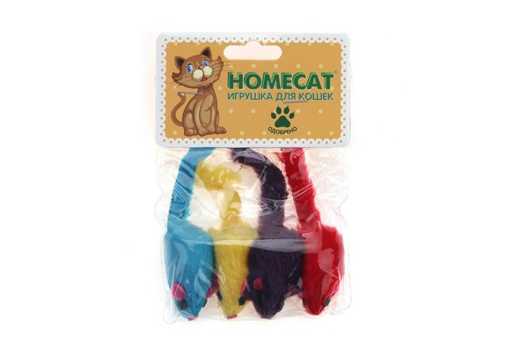 Homecat Игрушка Хоумкэт для кошек Мышки плюшевые цветные гремящие 1 х 4шт 5 см