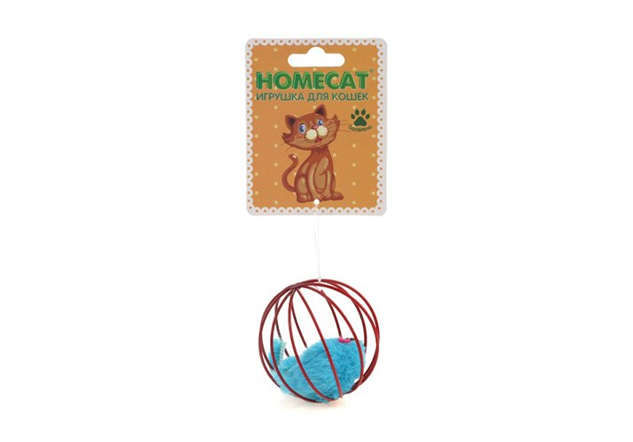Homecat Игрушка Хоумкэт для кошек мышка в проволочном шаре Ф 6 см