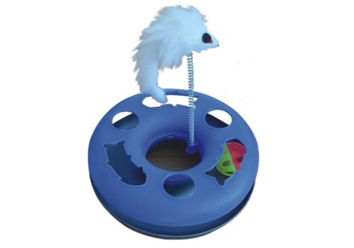 Homecat Игрушка Хоумкэт для кошек трек пластиковый с мячиком и мышкой на пружине 24 х 8 см