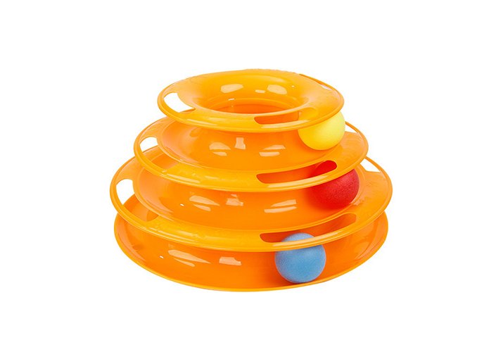 Homecat Игрушка Хоумкэт для кошек трек пластиковый трехэтажный с мячиками 24,5 х 12 см