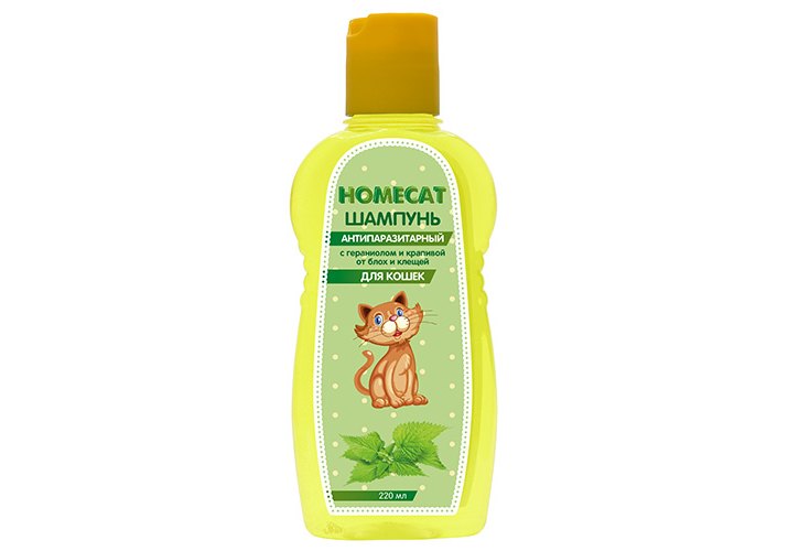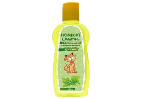 Homecat Шампунь Хоумкэт для кошек Антипаразитарный от блох и клещей с гераниолом и крапивой 220 мл