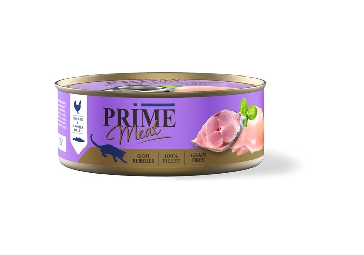 Prime Meat Chicken & Scomber fillet in jelly Консервы Прайм Мит для взрослых кошек Курица со скумбрией в желе (цена за упаковку) 100г х 12шт