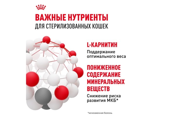 ROYAL CANIN® Sterilised (СТЕРИЛАЙЗД) способствует профилактике заболеваний мочевыделительной системы за счет сбалансированного cодержания минералов и поддержания рН мочи.