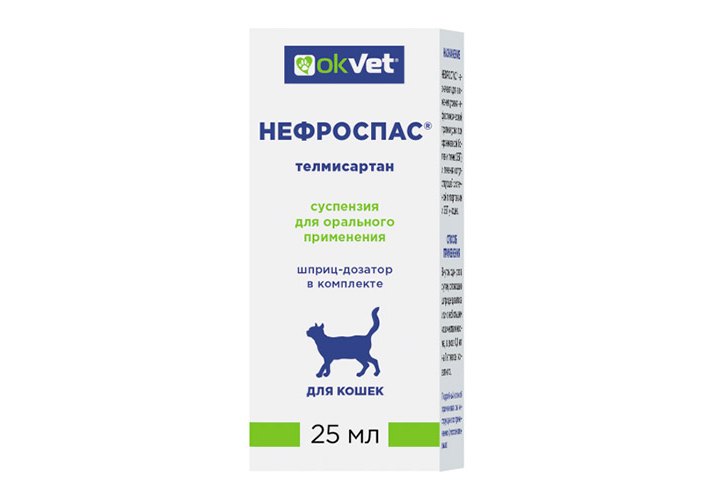 Okvet Нефроспас Суспензия для кошек для лечения хронической болезни почек и сопутствующей системной гипертензии 25 мл