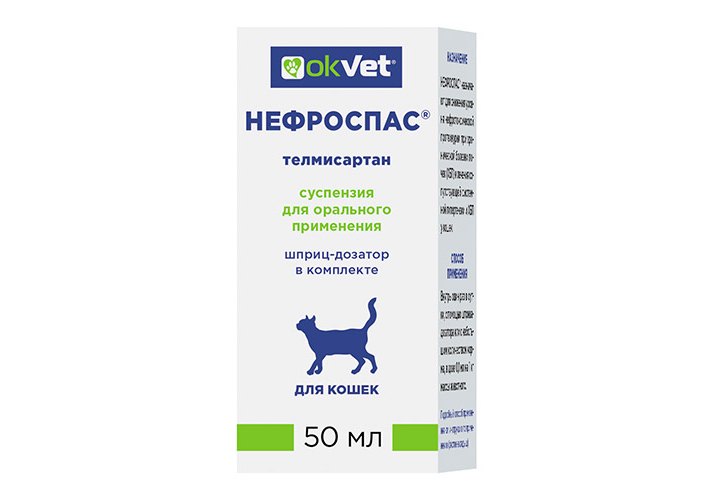 Okvet Нефроспас Суспензия для кошек для лечения хронической болезни почек и сопутствующей системной гипертензии 50 мл