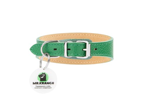 Mr.Kranch Ошейник-cеледка Мистер Кранч для собак из Натуральной кожи с QR-адресником Зеленый 19 - 23 см