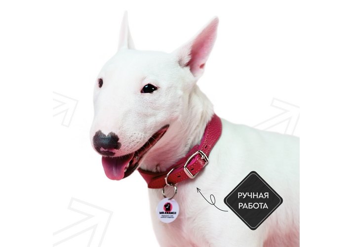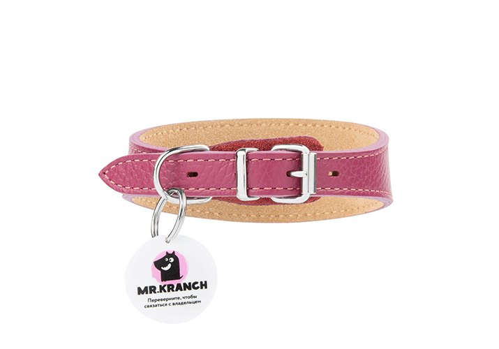 Mr.Kranch Ошейник-cеледка Мистер Кранч для собак из Натуральной кожи с QR-адресником Малиновый 19 - 23 см