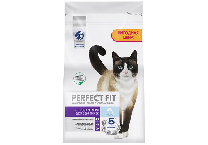 Perfect Fit Сухой корм Перфект Фит для взрослых кошек для Поддержания Здоровья Почек Лосось 2,5 кг