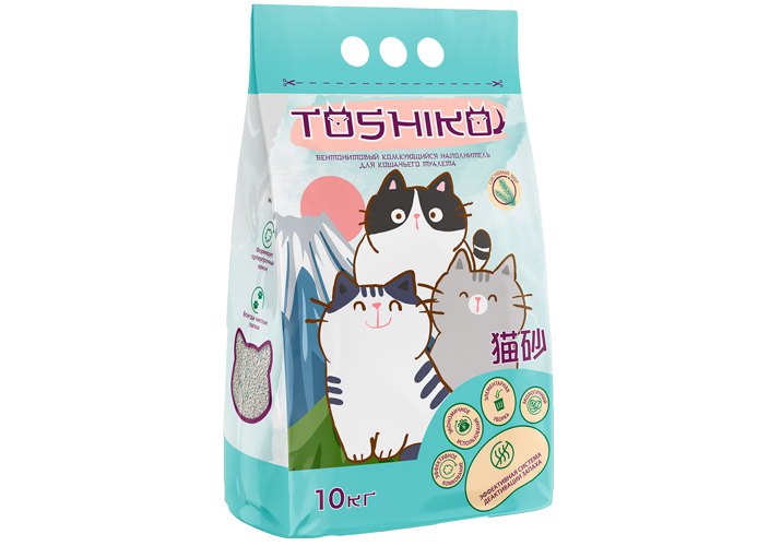Toshiko Комкующийся наполнитель Тошико для кошачьего туалета Бентонитовый Сосновый бор 10 кг