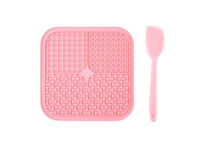 Mr.Kranch Лизательный коврик Мистер Кранч для животных для Медленного поедания Силиконовый Розовый с лопаткой 20 х 20 см