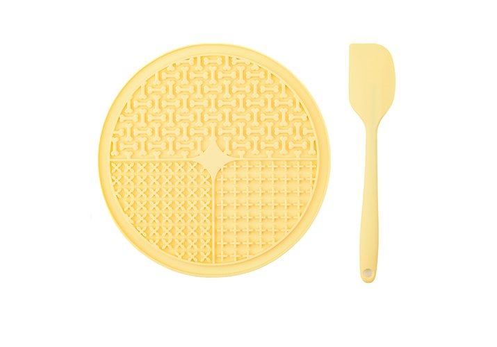 Mr.Kranch Лизательный коврик Мистер Кранч для животных для Медленного поедания Силиконовый Желтый с лопаткой 20 х 20 см