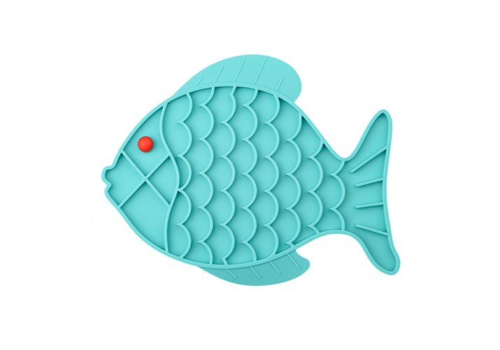 Mr.Kranch Лизательный коврик Мистер Кранч для животных для Медленного поедания Силиконовый Рыбка Голубой 24,5 х 19 см