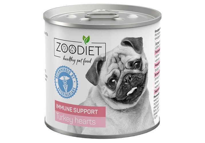 Zoodiet Immune Support Turkey Hearts Консервы Зоодиет для собак Поддержание иммунитета Сердечки индюшиные (цена за упаковку) 240г х 6шт