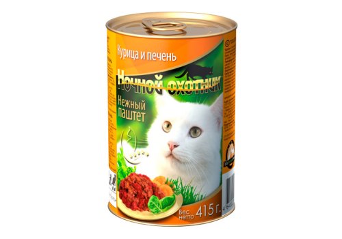 Ночной охотник Влажный корм Нежный паштет Курица и печень (цена за упаковку) 415г х 20шт