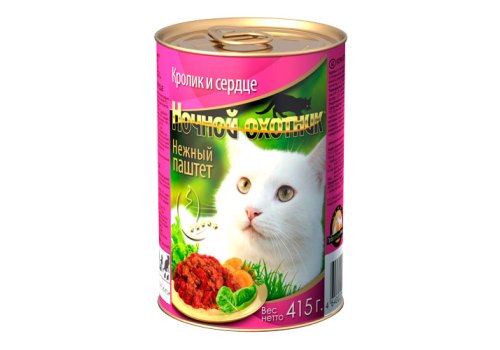 Ночной охотник Влажный корм Нежный паштет Кролик и сердце (цена за упаковку) 415г х 20шт