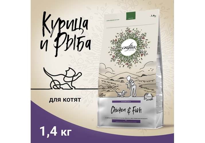 Craftia Harmona Kitten Chicken & Fish Сухой корм Крафтия для Котят Курица рыба 1,4 кг