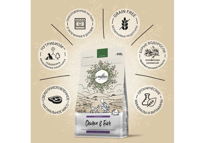 Craftia — корма класса ультрапремиум, созданные с заботой о питомцах и окружающей среде. Тщательно подобранные ингредиенты, уникальные рецептуры — в этих кормах есть все необходимое, чтобы питомцы и их владельцы ощутили гармонию жизни, здоровья и природы.