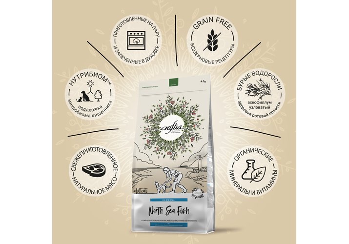Craftia — корма класса ультрапремиум, созданные с заботой о питомцах и окружающей среде. Тщательно подобранные ингредиенты, уникальные рецептуры — в этих кормах есть все необходимое, чтобы питомцы и их владельцы ощутили гармонию жизни, здоровья и природы.